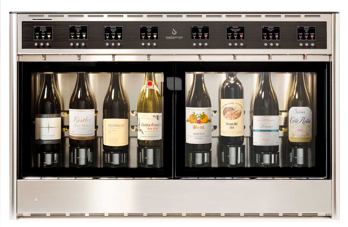 Os dispensadores de vinho Wineemotion combinam a qualidade e a alta tecnologia para uso profissional. Os detalhes únicos fazem de cada máquina uma peça de design, despertam os sentidos e reforçam a confiança no vinho a copo.