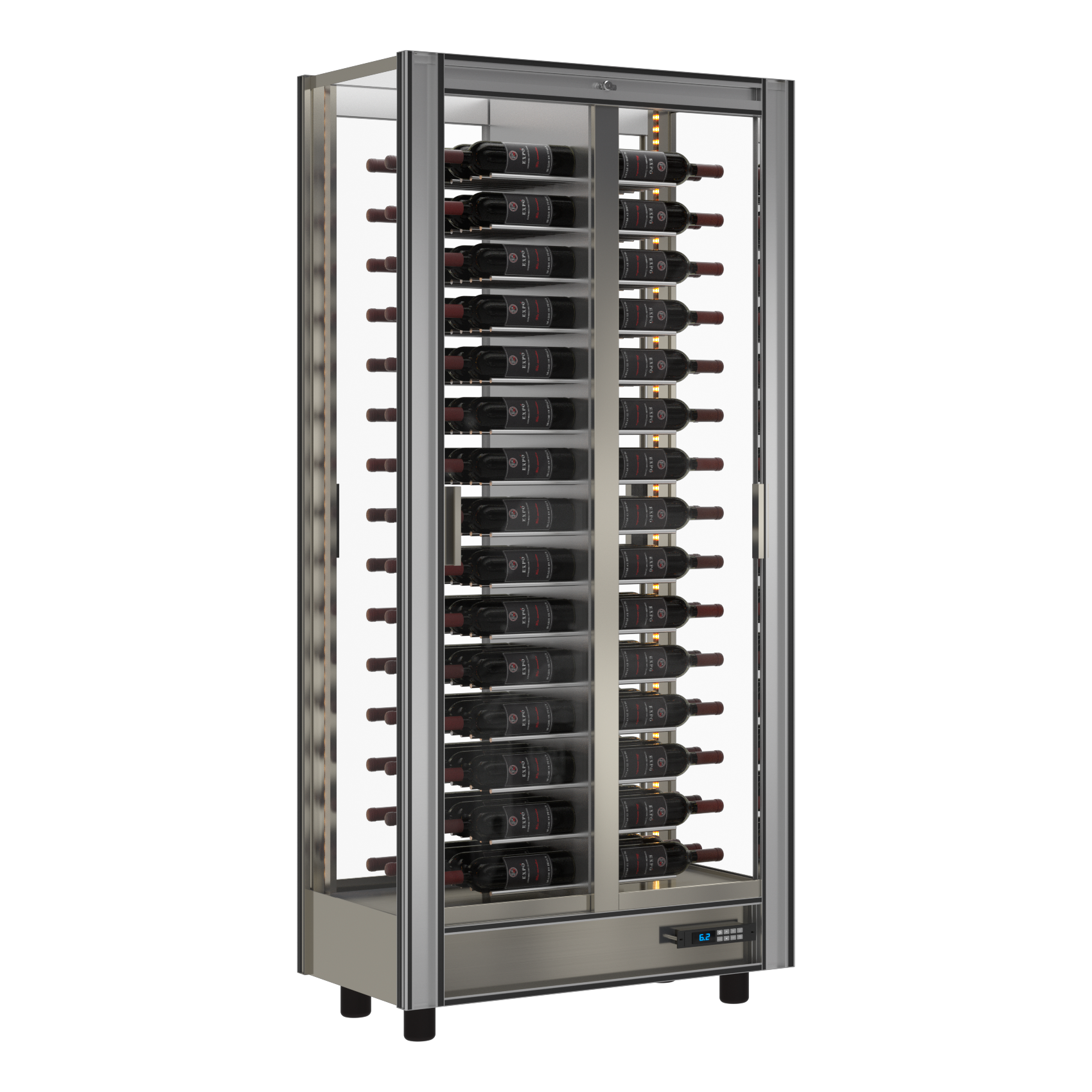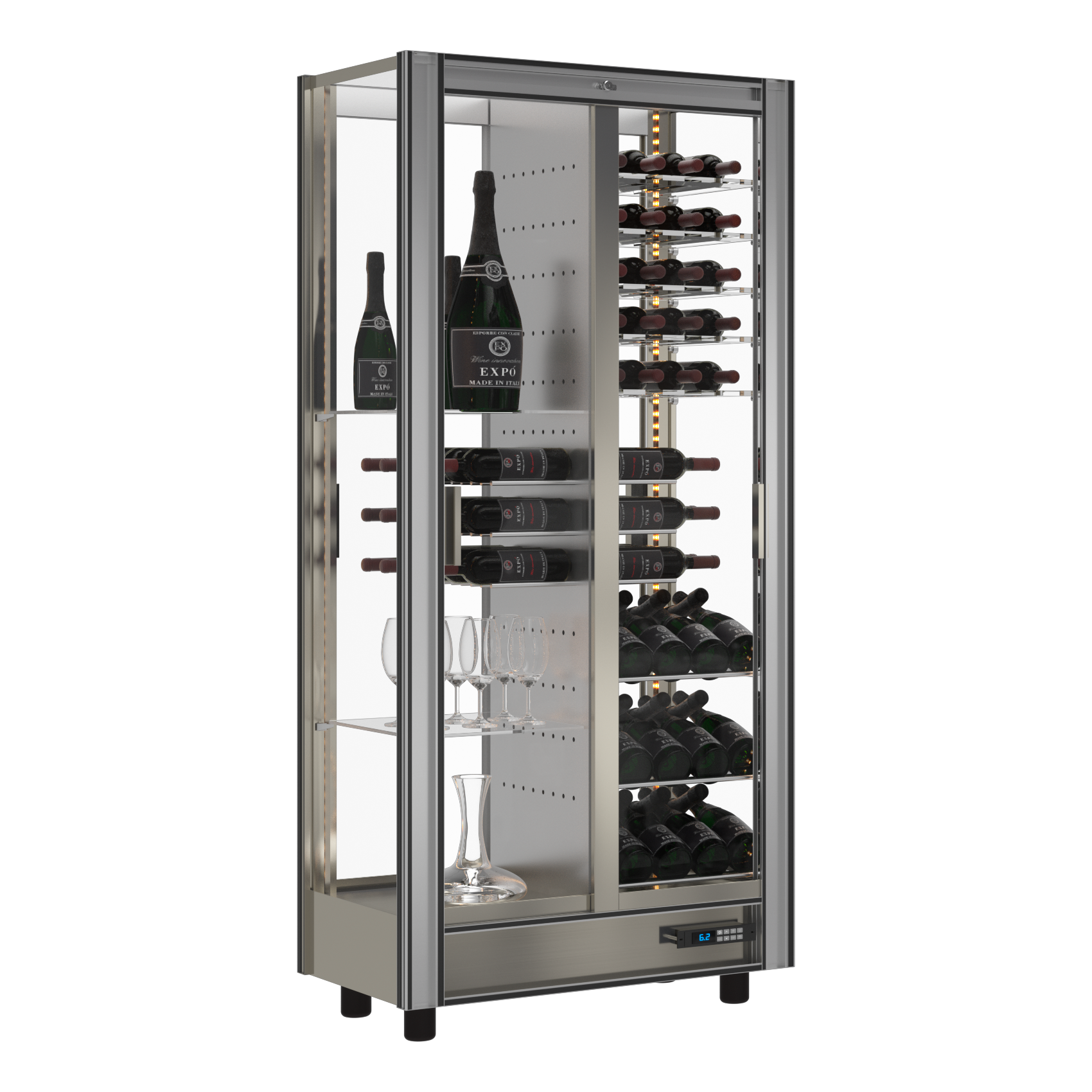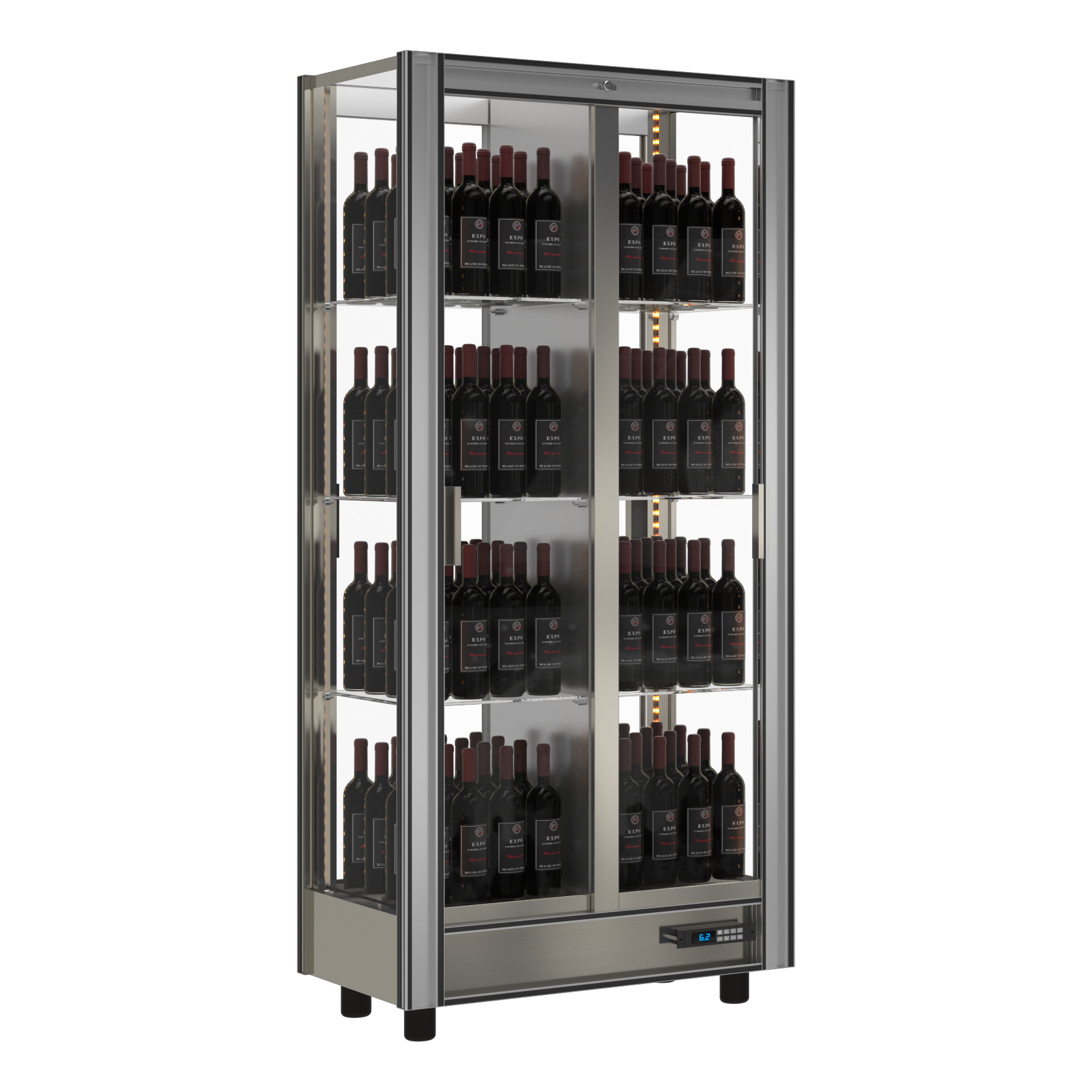 Portas de correr em vidro (com fechadura) em 1 ou 2 frentes. Laterais em vidro. Temperatura programavel de 4 a 18ºC. Frio estático ou ventilado Iluminação led interna em branco ou RGB Produto sujeito a configuração personalizada (o preço pode variar) Veja as opções no documento anexo Para encomendar este produto contacte-nos para info@beversys.pt Aluguer operacional (renting) a partir de €125(+IVA) por mês*