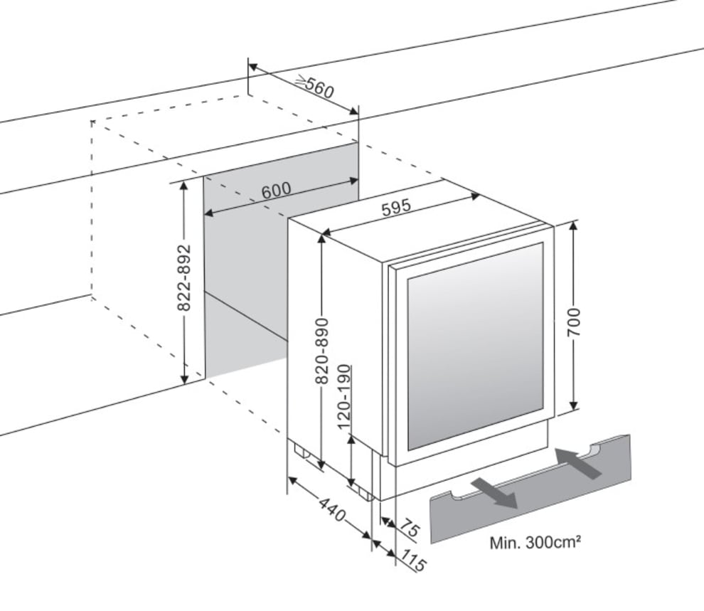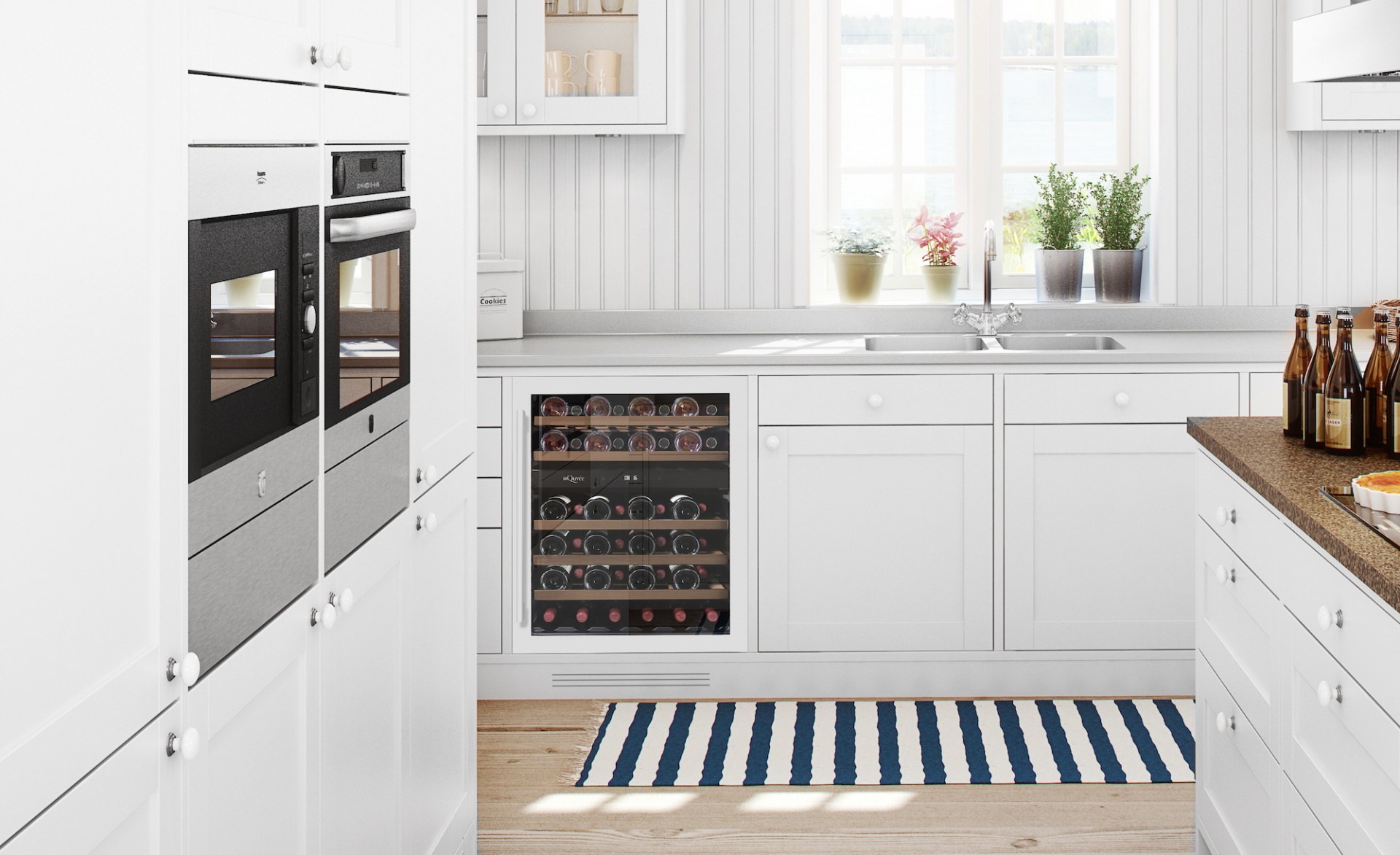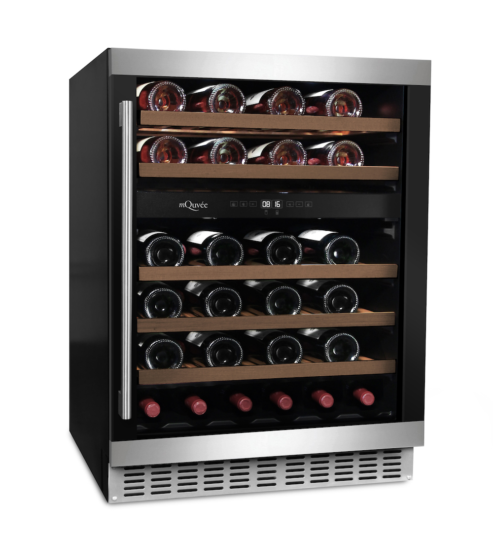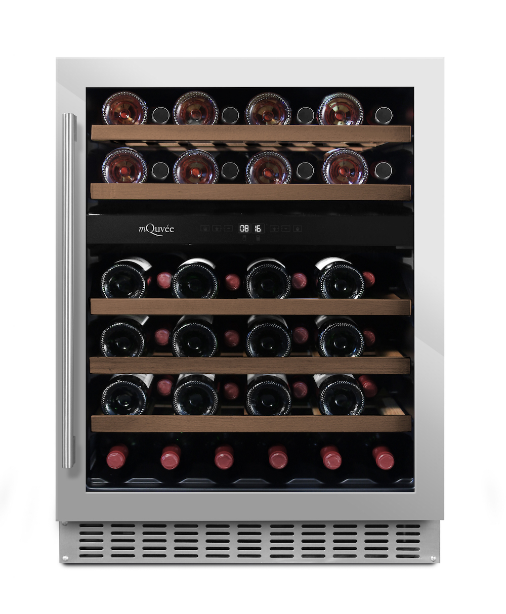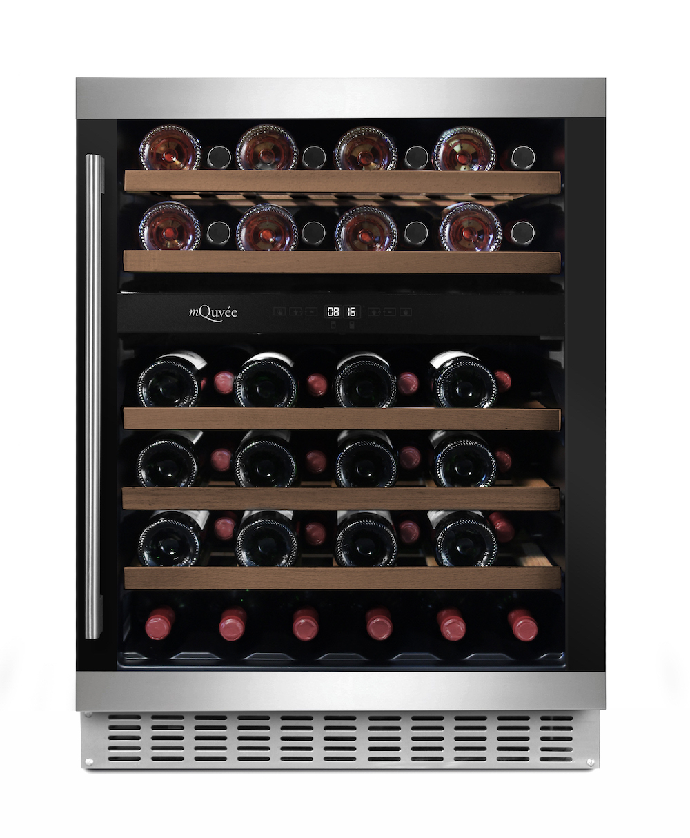 Este equipamento da marca sueca mQuvée, pode instalado/encastrado por debaixo de um balcão ou em qualquer outro local em "instalação livre". Com várias hipoteses de acabamento para melhor se enquadrar no seu espaço. Capacidade para 44 garrafas com 5 prateleiras deslizantes